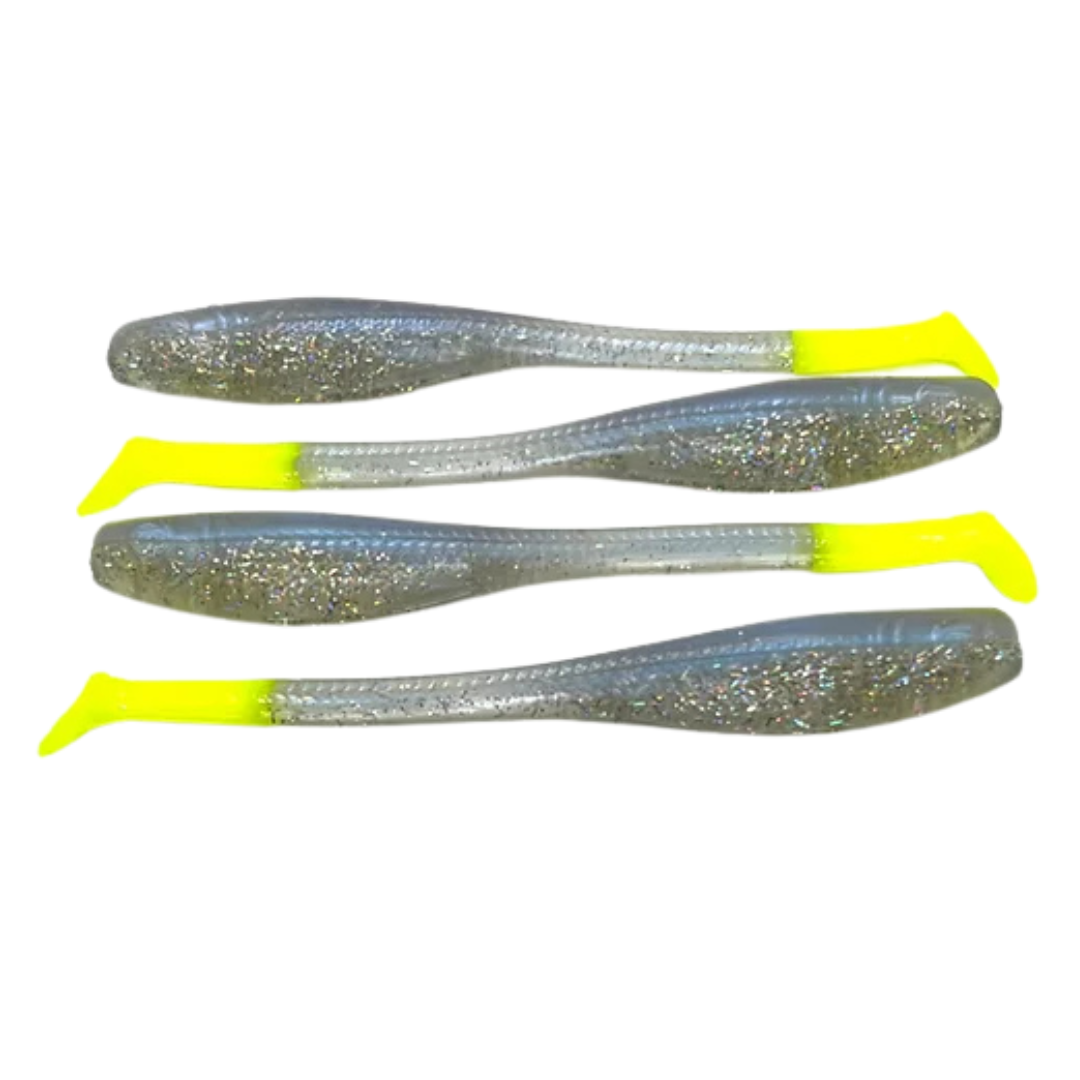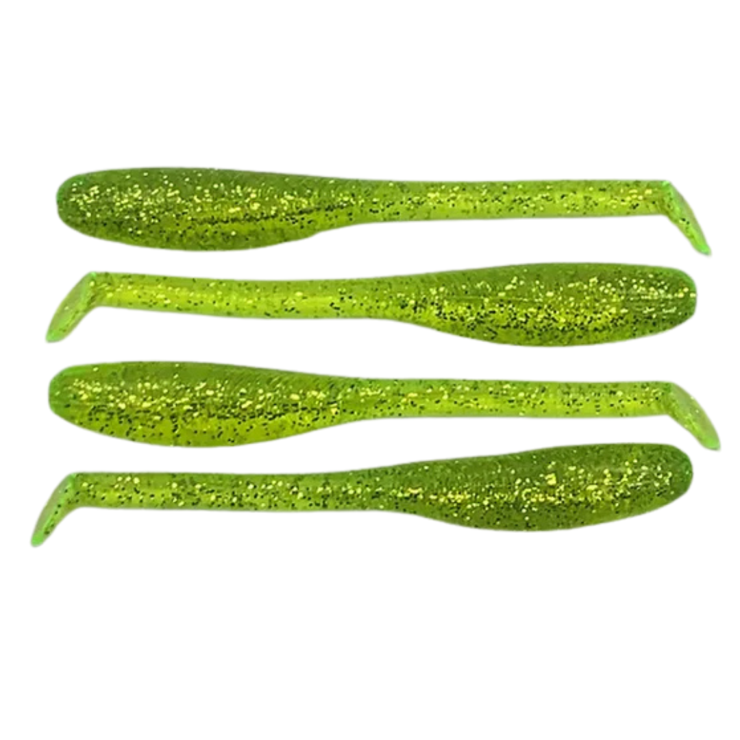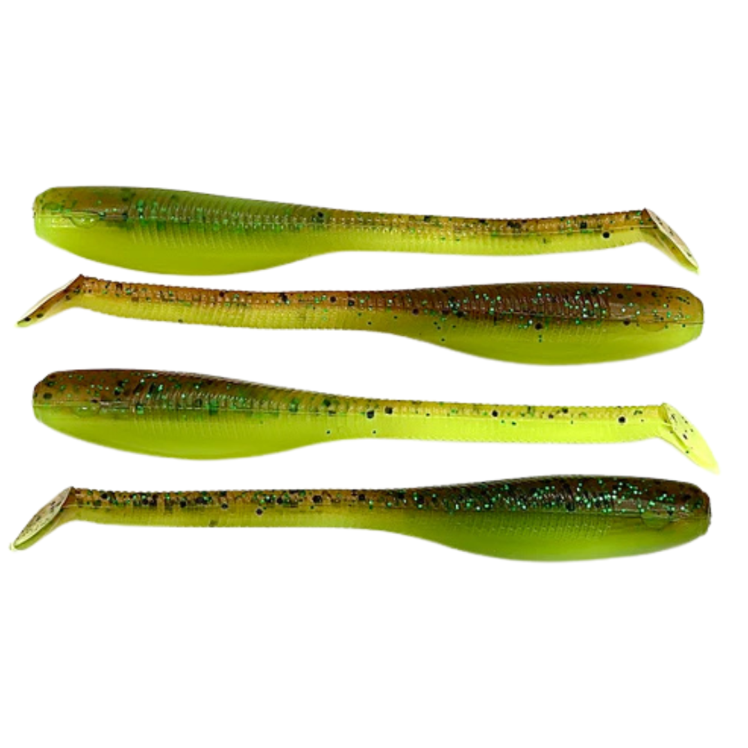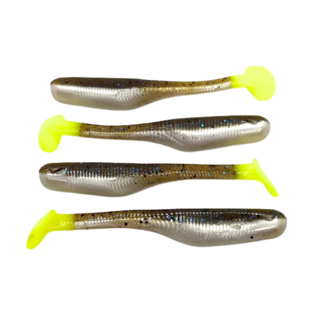 Down South Lures - Burner Shad Big Papa Pearl Chartreuse