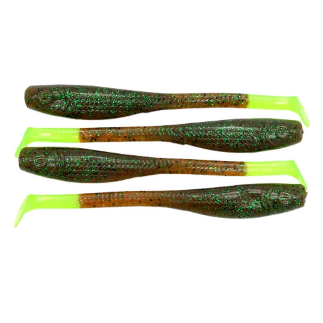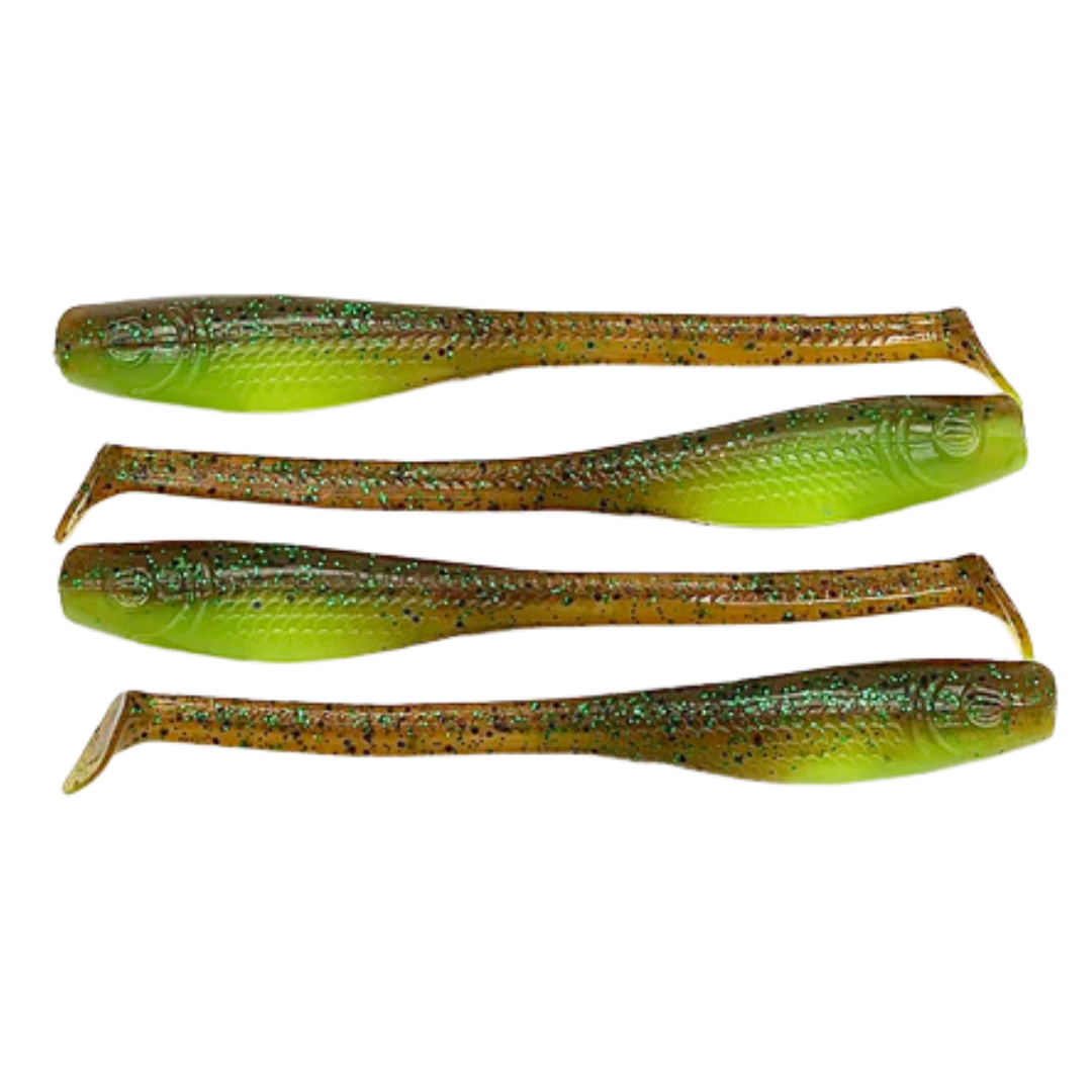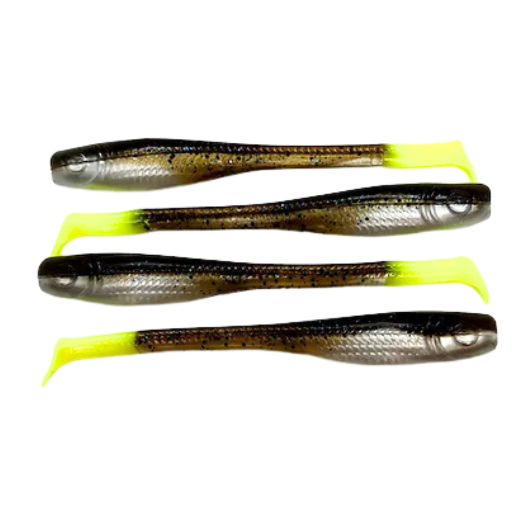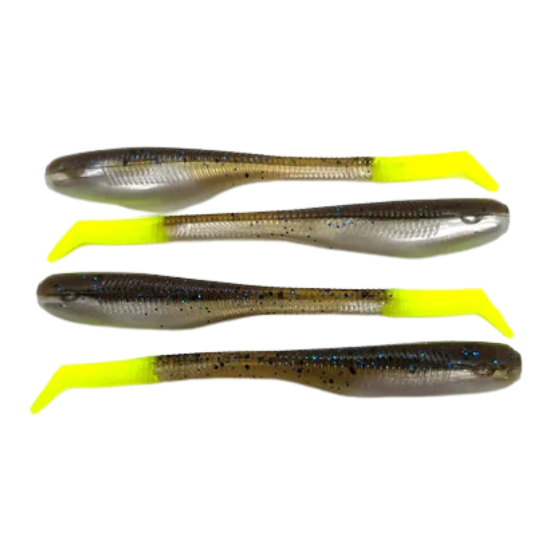 Down South Lures - Burner Shad Big Papa Pearl Chartreuse